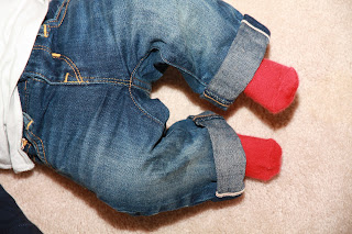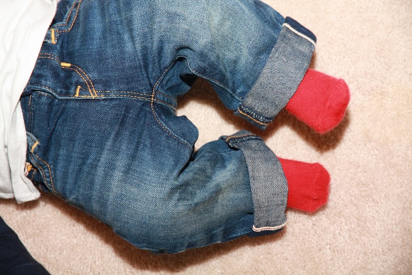 Hunter is getting so big! We are now fully fitting into 3-6 months clothes... though Daddy is still in denial that his little man is getting bigger and Matt will still try to cram him into a 0-3 month outfit. The 3-6 moth clothes make him look like such a big boy also! I love his little heart breaker outfit above from GAP.