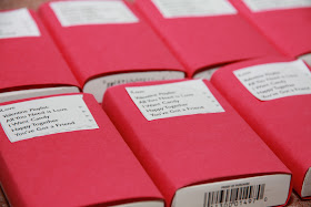 4. (Here is where I became a slacker mom and stopped taking pictures...) Next cut bakers twine... Two strings per candy iPod. I tied the two stings together half way and at one end.